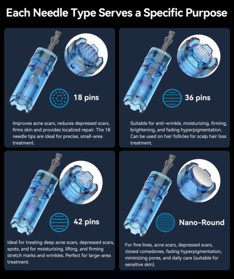 Premium Stainless Steel Needles: Made from high-quality stainless steel, these needles provide a smooth, consistent glide for effective and comfortable microneedling.