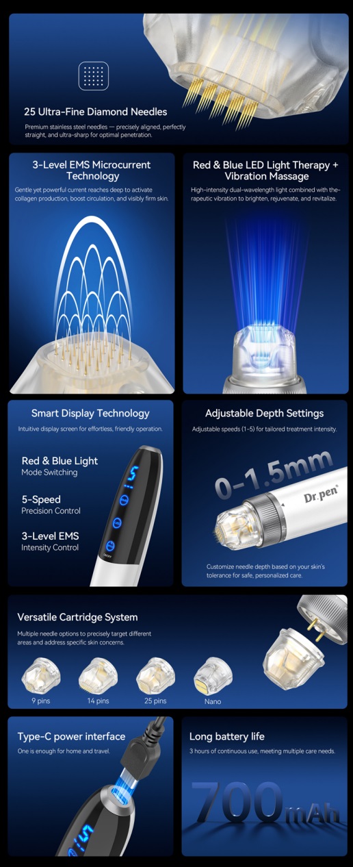The Dr. Pen Q1S is a brand new for 2026. This multifunctional microneedling pen is designed to elevate your skincare routine with advanced cosmetic technologies. Ideal for profesional and home use, suitable for both face and scalp treatments.