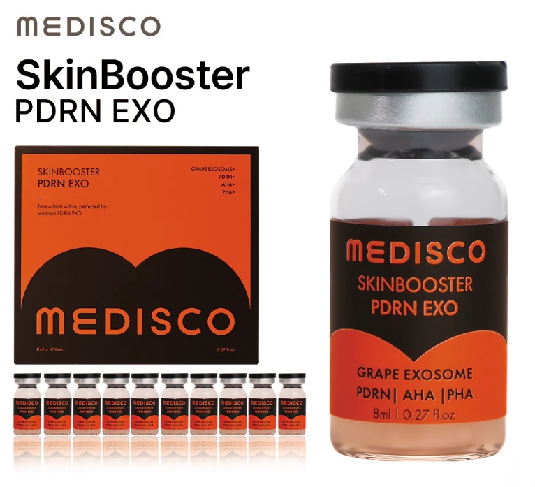 MEDISCO SKINBOOSTER PDRN EXO is a powerful microneedling solution formulated to enhance skin regeneration and restore elasticity. With 5,000 PPM of Sodium DNA, it helps promote cell renewal while improving skin strength. Grape exosomes further support the skin’s natural barrier. AHA and PHA gently exfoliate to smooth rough texture, while a combination of high- and low-molecular-weight hyaluronic acid delivers intense hydration both on the surface and deep within the skin.